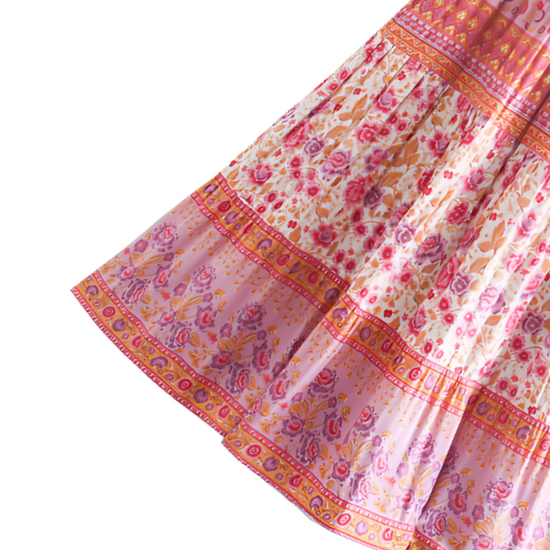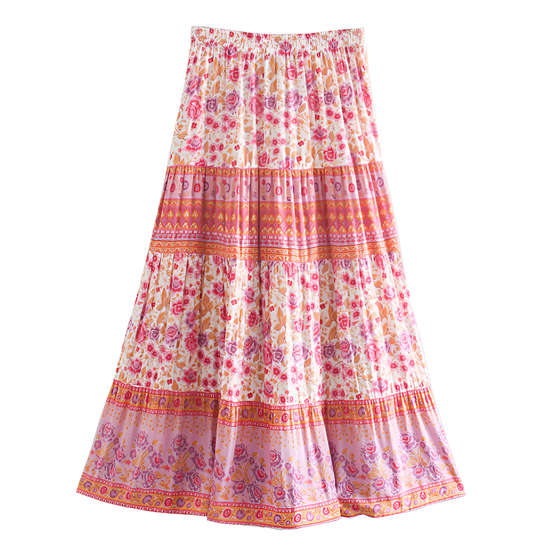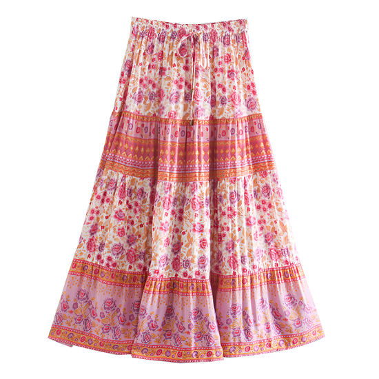 Cette jupe rose année 60 ramène l'esprit flower power dans ta garde-robe moderne. Les imprimés géométriques rose-orange créent ce look rétro unique que tout le monde va te demander d'où tu sors. Coupe trapèze mi-longue qui tourne quand tu marches - mouvement fluide signature des sixties. Coton pur qui respire, tombe naturelle sans artifice. Cette jupe vintage 60s se mixe ultra-facile : baskets blanches pour un look décontracté, boots + pull pour l'automne. Ta pièce conversation de la saison.